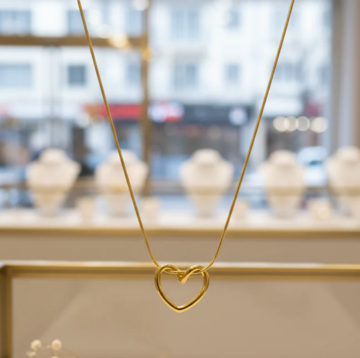 Modern çizgilere sahip bu altın kalp kolye, sevginin en zarif ve parlak halini temsil ediyor. Boynunuzda taşıdığınız bu minimal mücevher, hem gündüz hem de gece şıklığınızın ışıltılı ve zamansız odak noktası olacak. Sevginizi Parıldatın.