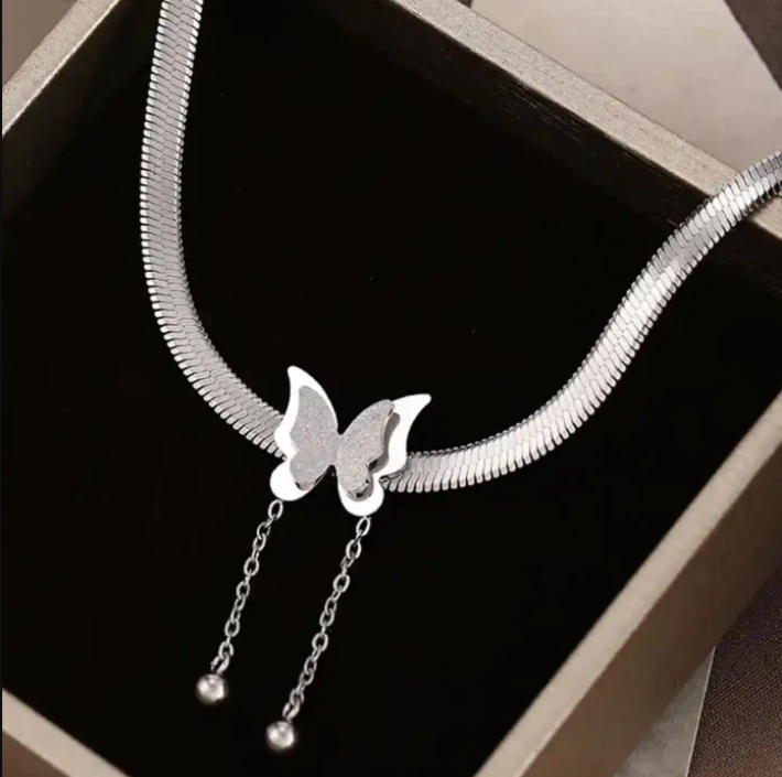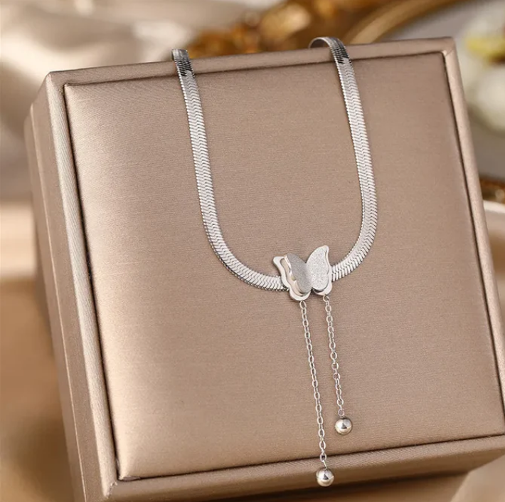 Modern ve klasik zarafeti buluşturan bu parça, İtalyan (Yılan) zincirin akışkan parlaklığını ve şık duruşunu kelebeğin narin güzelliğiyle birleştiriyor. Özgürlüğü ve yenilenmeyi simgeleyen kelebek figürü, altından sarkan zincir uçlarıyla her hareketinizde ışık saçıyor.