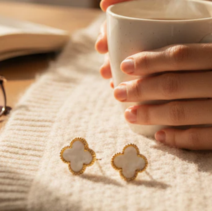 Dört yapraklı yoncanın saf şansını altın dokunuşlarla buluşturuyor. Beyazın aydınlık ve narin asaleti, bu ikonik tasarımı her anınıza taşıyor. Zarafeti ve inceliği bir arada arayanlar için büyüleyici bir parça.