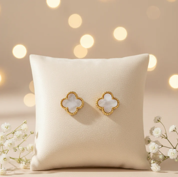 Dört Yapraklı Yonca Küpe (Beyaz)